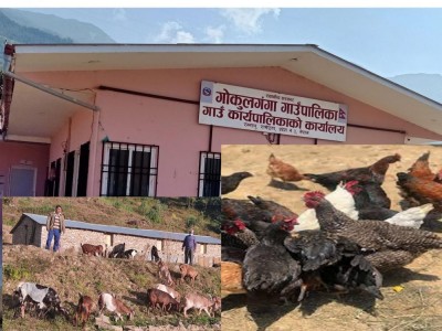 फागुन २१, रामेछाप । रामेछाप जिल्लाको गोकुलगंगा गाउँपालिकाले लिएर आएको निति अनुसार व्यवसायिक रुपमा पशुपन्छी पालन बढेसँगै गाउँपालिका मासुमा आत्मनिर्भर बनेको हो । गाउँपालिकाभित्र लोकल, बोइलर र लेस कुखुरा पालन बढेको छ । गोकुलगंगा गाउँपालिका मासुमा आत्मनिर्भर बन्ने रामेछापको पहिलो स्थानीय तह बनेको छ ।&nb...