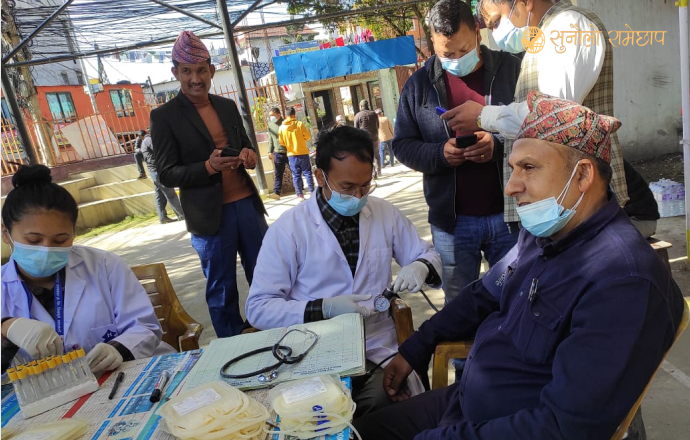 फागुन १ काठमाडौं , नेकपा एमाले रामेछाप नगर –काठमाडौं सम्पर्क मञ्चद्वारा आयोजित खुल्ला रक्तदान कार्यक्रममा चालीस जना दाताहरूले रक्तदान गरेको छ ।