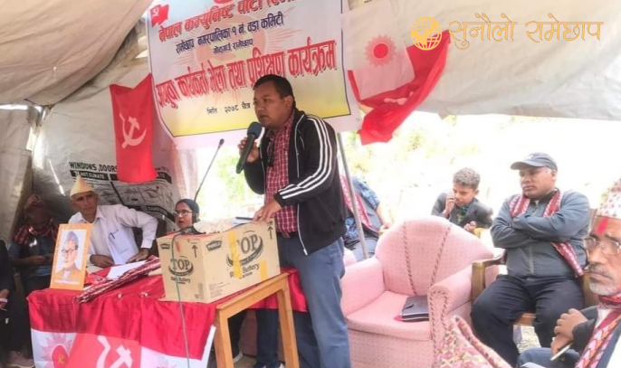 वडा कमिटीको अध्यक्ष बाबुराम कार्कीको अध्यक्षतामा तथा रामेछाप जिल्ला कमिटीको अध्यक्ष आन्नद कुमार श्रेष्ठको प्रमुख आतिथ्यमा आयोजना गरिएको कार्यक्रममा बागमती प्रदेश कमिटी सदस्य दिपशिषा दाहाल,रामेछाप जिल्ला कमिटी उपसचिव होतराज ढकाल विशेष अतिथि रहनु भएको थियो भने जिल्ला कमिटी सदस्य विन्दा बराल घिमिरे ,बिमल कुमार कठायत, राम बहादुर बुढाथोकी ,सीता कुमारी खत्री ,रामेछाप नगर कमिटी अध्यक्ष रोशन पाख्रीन,उपाध्यक्ष हरि प्रधान,सचिव सुन्दर घिमिरे ,उपसचिव तथा नगर पार्टी प्रवक्ता माधब ढकाल,गोठगाउँका निर्वाचित वडा अध्यक्ष नर बहादुर थापा ,रामेछाप नगर कमिटी सदस्य भुवन बोहोरा ,देबचन्द्र कठायत ,शिव कार्की लगायतका नेताहरू अतिथि रहनु भएको थियो ।