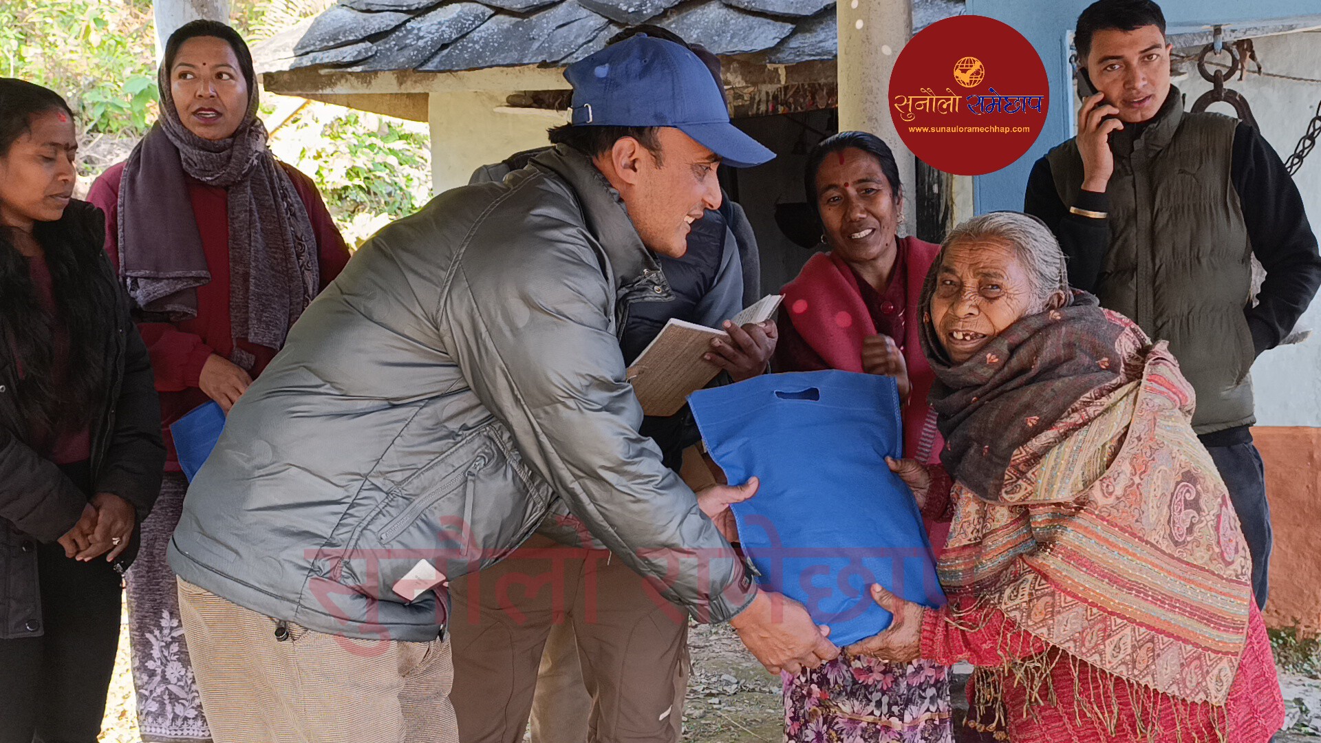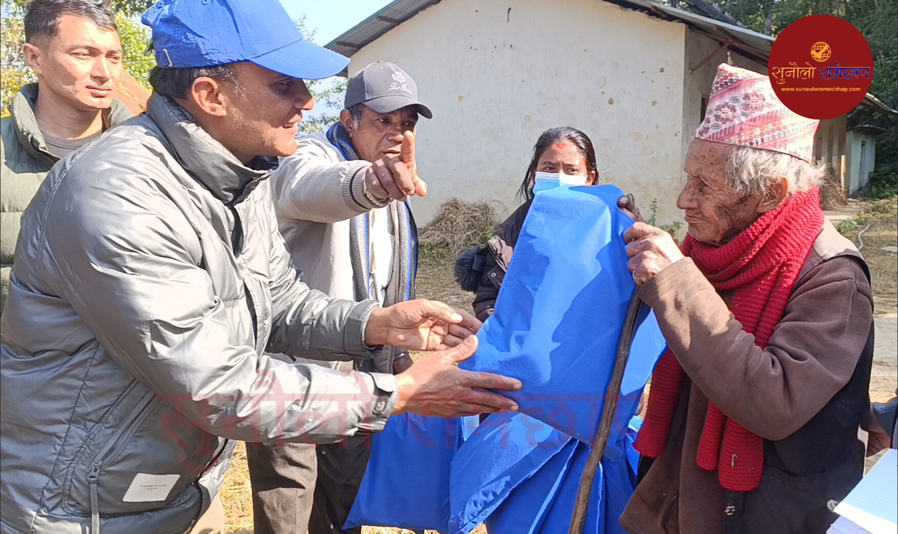 एक देखि साविककाे वडा नं. नाैं सम्मका गाउँमै बस्नु हुने १०४ जना जेष्ठ नागरिकहरू लाई पहिलाे चरणमा टाेल- टाेलमा पुगी न्यानाे कपडा वितरण गरि सकेकाे र छुटेको जेष्ठ नागरिकहरूलाई पनि छिटै वितरण गर्ने सराेकार समाजले सामाजिक सञ्चालबाट सार्वजनिक गरिसकेको छ ।